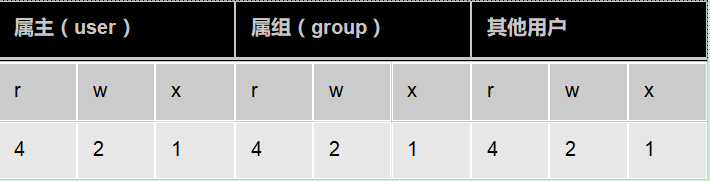 后面的9位分为3组,每3位置一组,分别代表属主的权限,与当前用户同组的 用户的权限,其他用户的权限