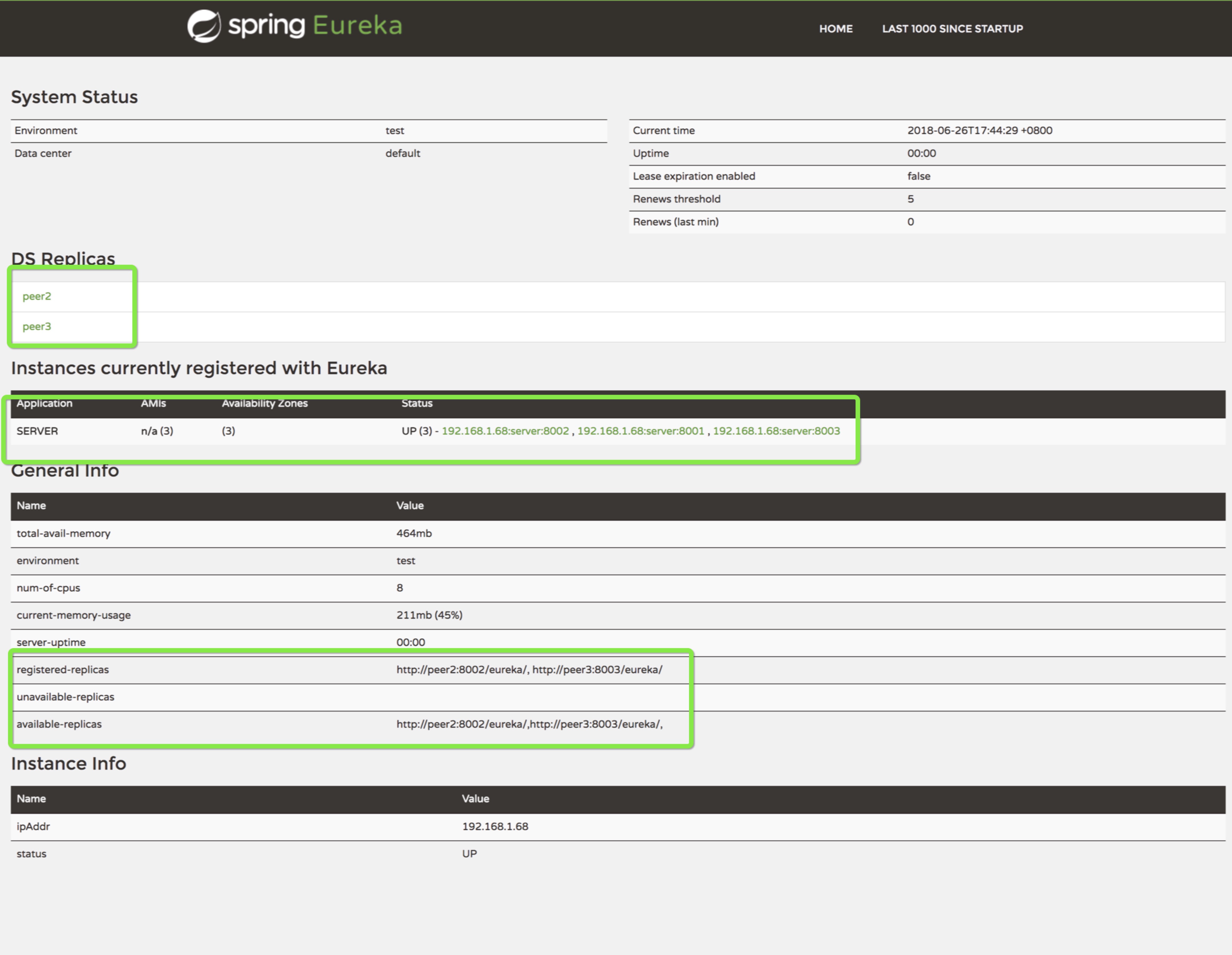 启动eureka-server1、eureka-server2、eureka-server3三个项目,打开 http://localhost:8001 观察页面: