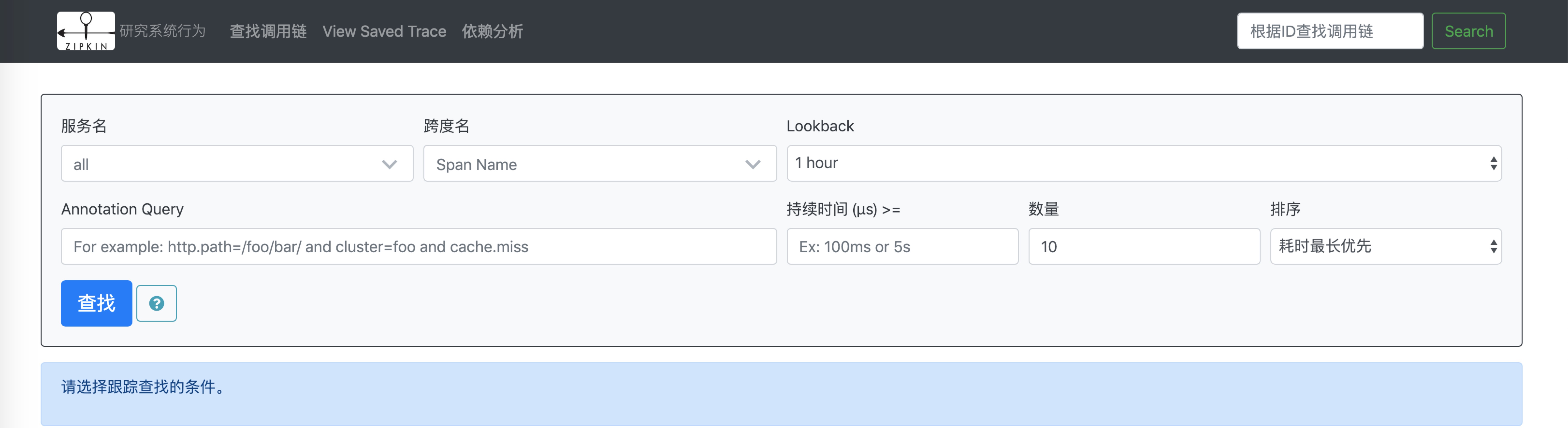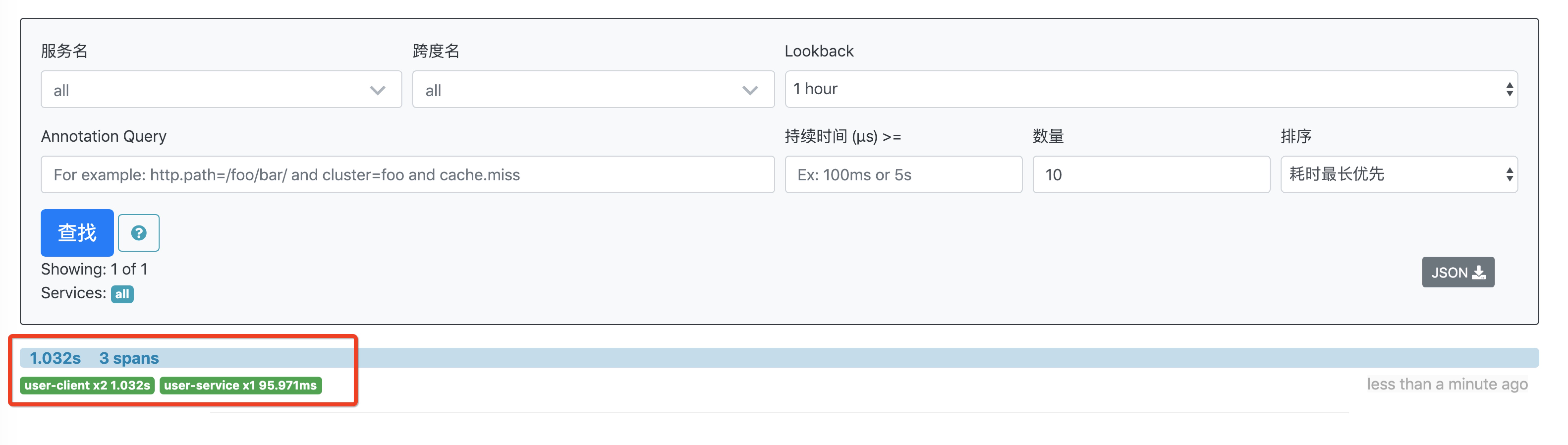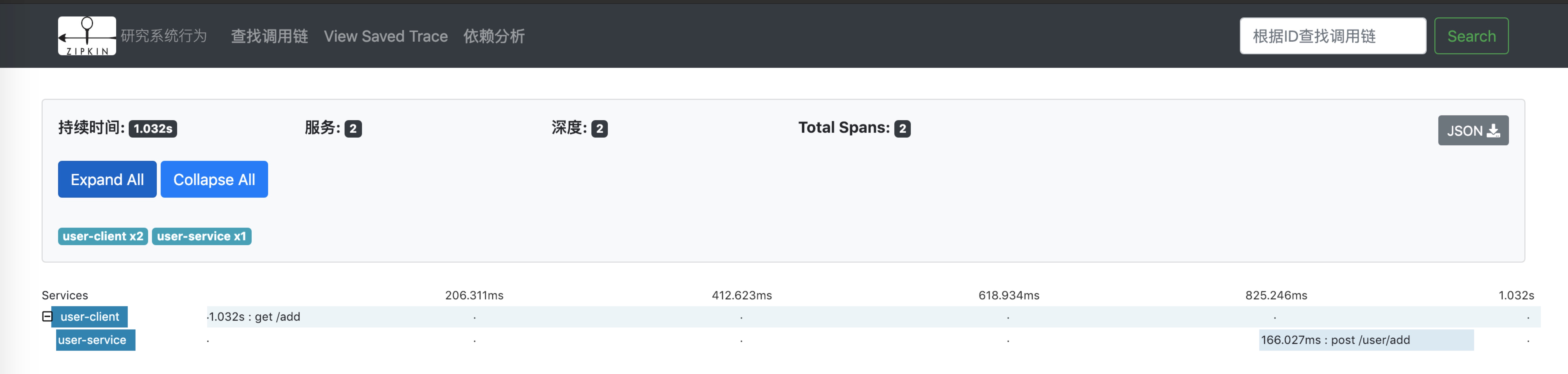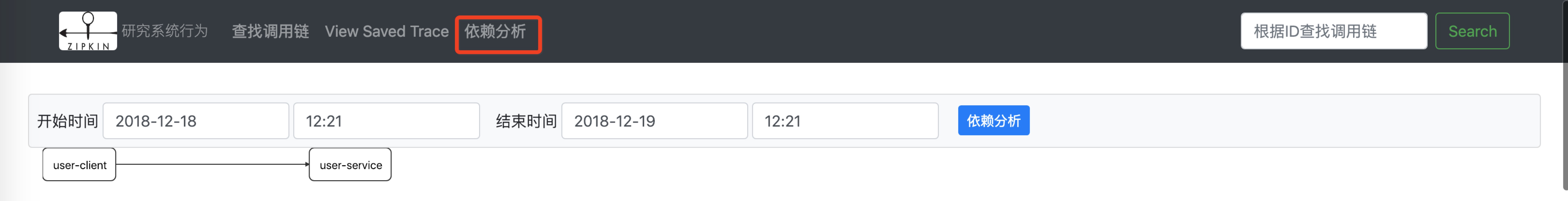 本次测试直接用的in-Memory 方式,在 Zipkin 服务重启后先前的调用数据就丢失了。