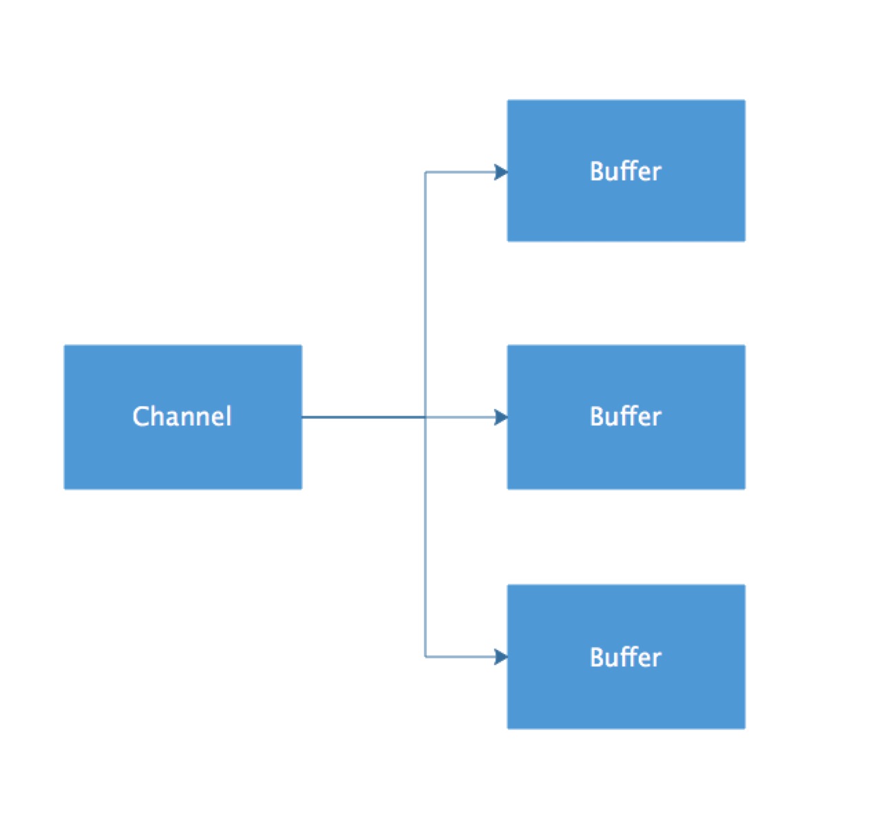 一个 Channel 可以对应多个 Buffer,如当我们读取一个文件时,可以使用多个缓冲区来读这样会大大提高读取效率,将缓冲区的内容写入到Channel中时会用到聚集写入。
