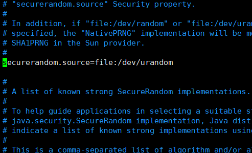 这时候根据修改内容就可以查到因为此原因不仅可以造成tomcat卡住,也会造成weblogic启动缓慢,linux或者部分unix系统提供随机数设备是/dev/random 和/dev/urandom ,两个有区别,urandom安全性没有random高,但random需要时间间隔生成随机数。jdk默认调用random。