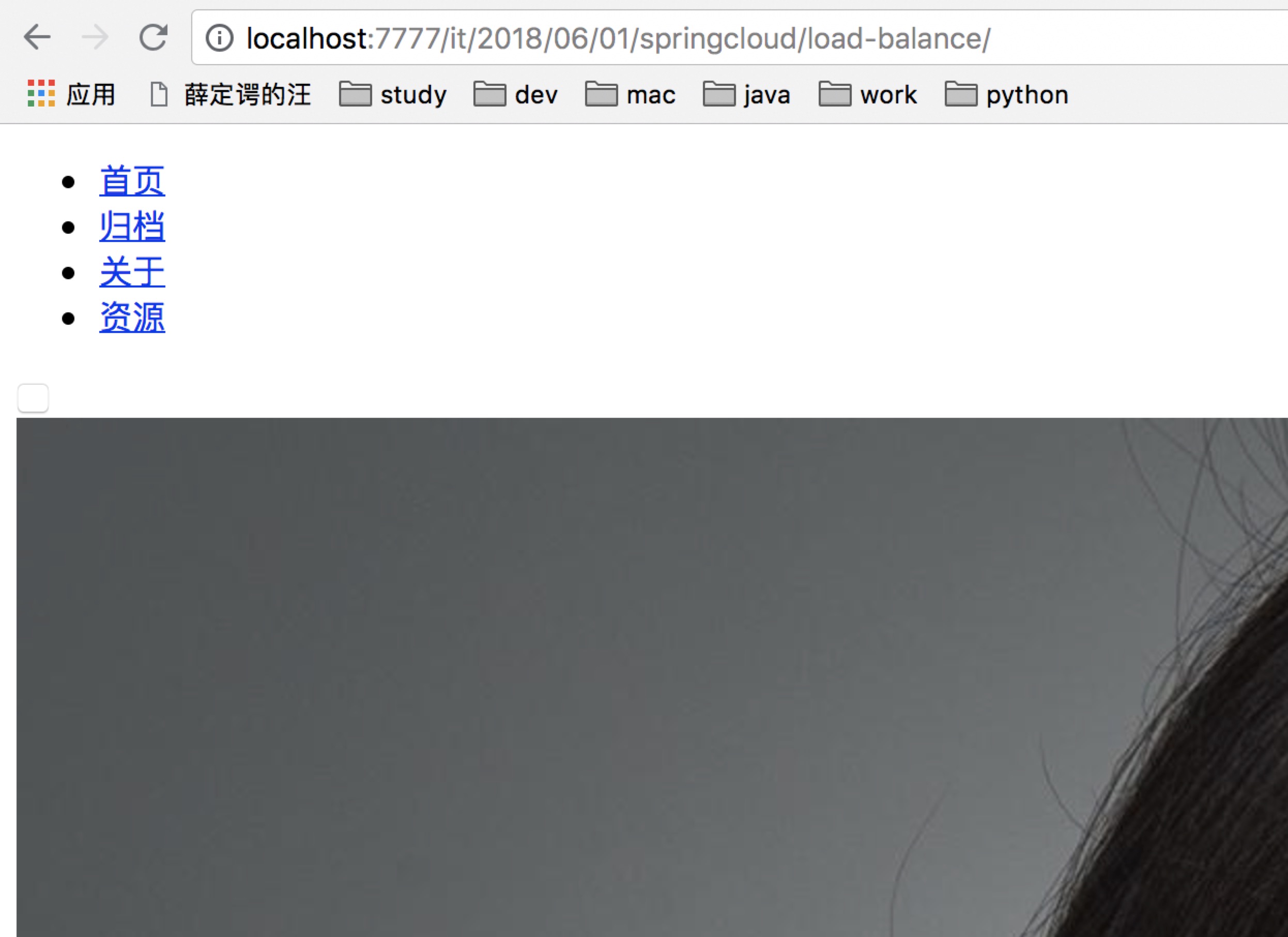 启动 zuul-test 项目,访问 http://localhost:7777/gateway/2018/06/01/springcloud/load-balance/ ,页面显示: