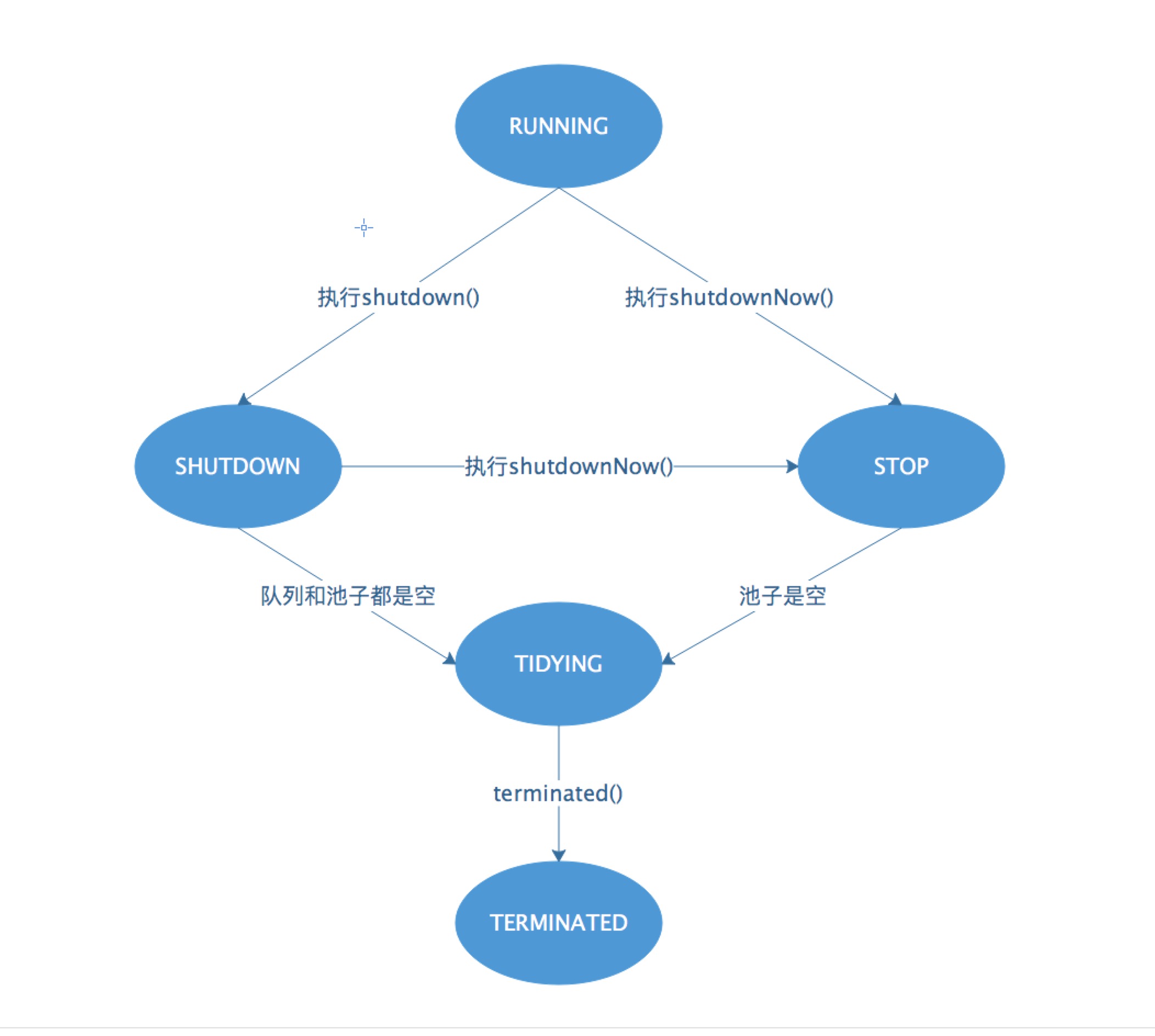 SHUTDOWN:不接受新任务,但队列里的任务要执行完毕,调用shutdown()方法后的状态。